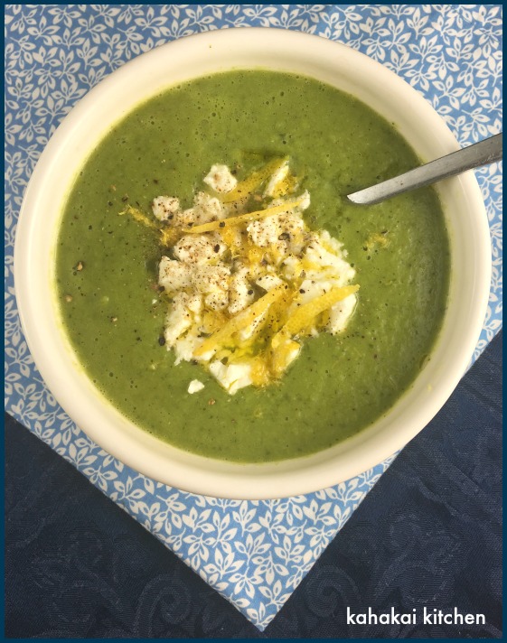 Great, easy and extremely green summer soup! Feta and lemon zest topping with a drizzle of olive oil is an idea you can recycle almost with any soup. A trick of great soup masters. And maybe you should plant that basil in a big pot in late spring, so you have your own supply over the summer. Other great lindy soups here.