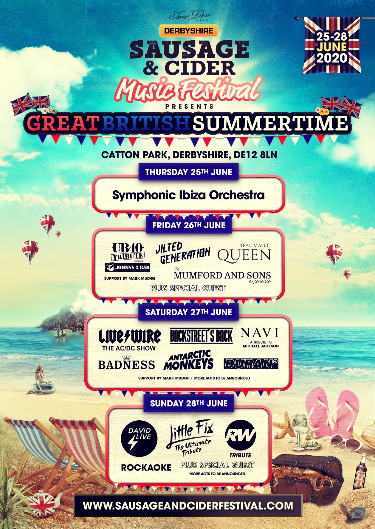 The Midlands' favourite family get-together, the 'Sausage and Cider Festival' is returning to Catton Park, Derbyshire in summer 2022. 23RD - 26TH JUNE 2022Sizzling food, drink and music festival with more than 20 of the world's top tribute acts launches 2022 edition. The Midlands' favourite family get-together, the 'Sausage and