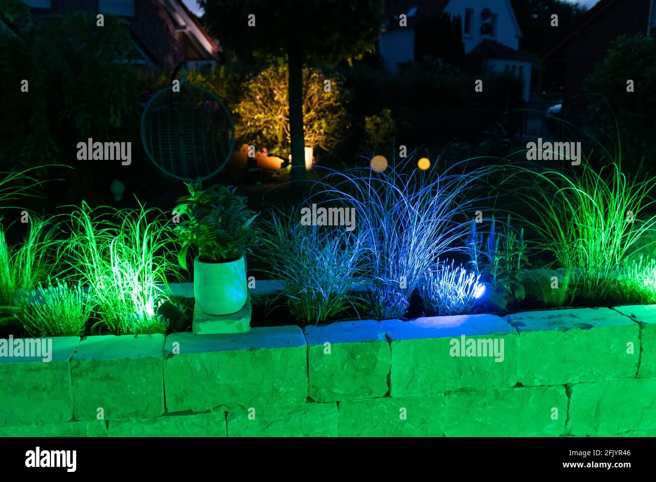 Smart Ambient garden lighting on a bangkirai terrace Stock Photo Alamy