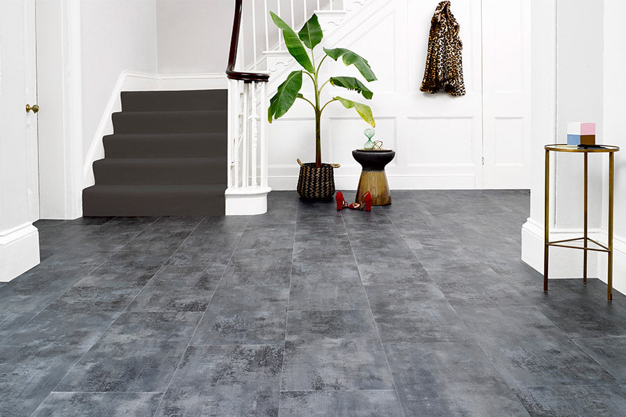 Spectra Dark Grey Stone Tile Luxury Glue Down Vinyl Flooring