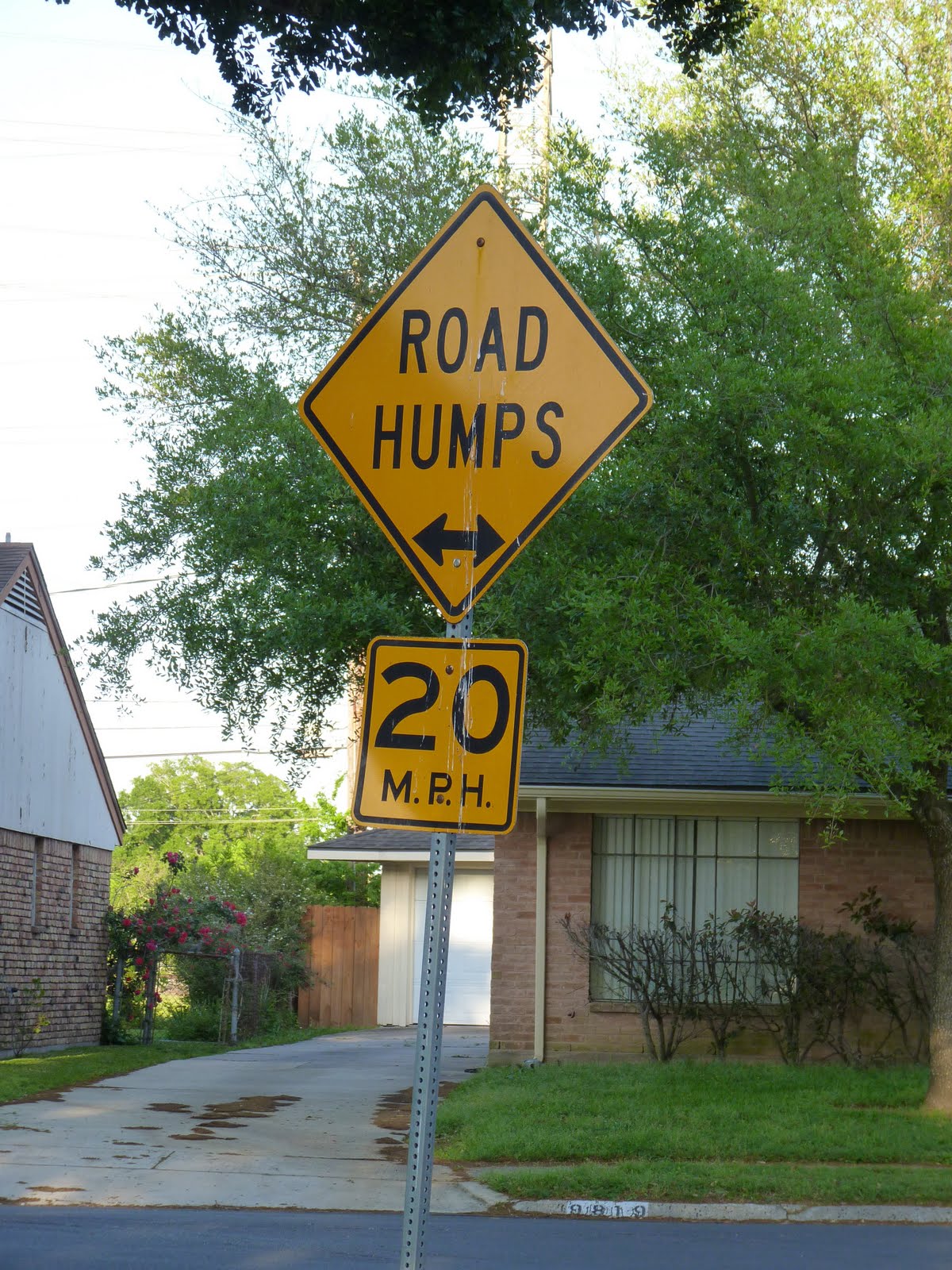 Two- or three-speed humps might need to be installed and are generally set 350 to 550 feet apart on long stretches of a street because drivers might speed up after traversing them. Warning signs are typically used but are placed a bit ahead of the road hazard. The actual humps may sneak up on you during the night or at sunset/sunrise.