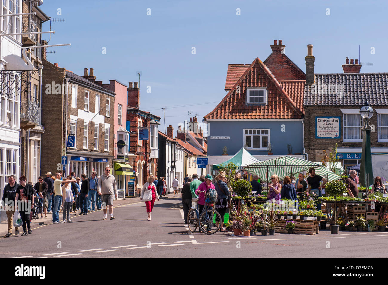 Southwold Suffolk, view in summer of people walking in the High Street in the centre of the