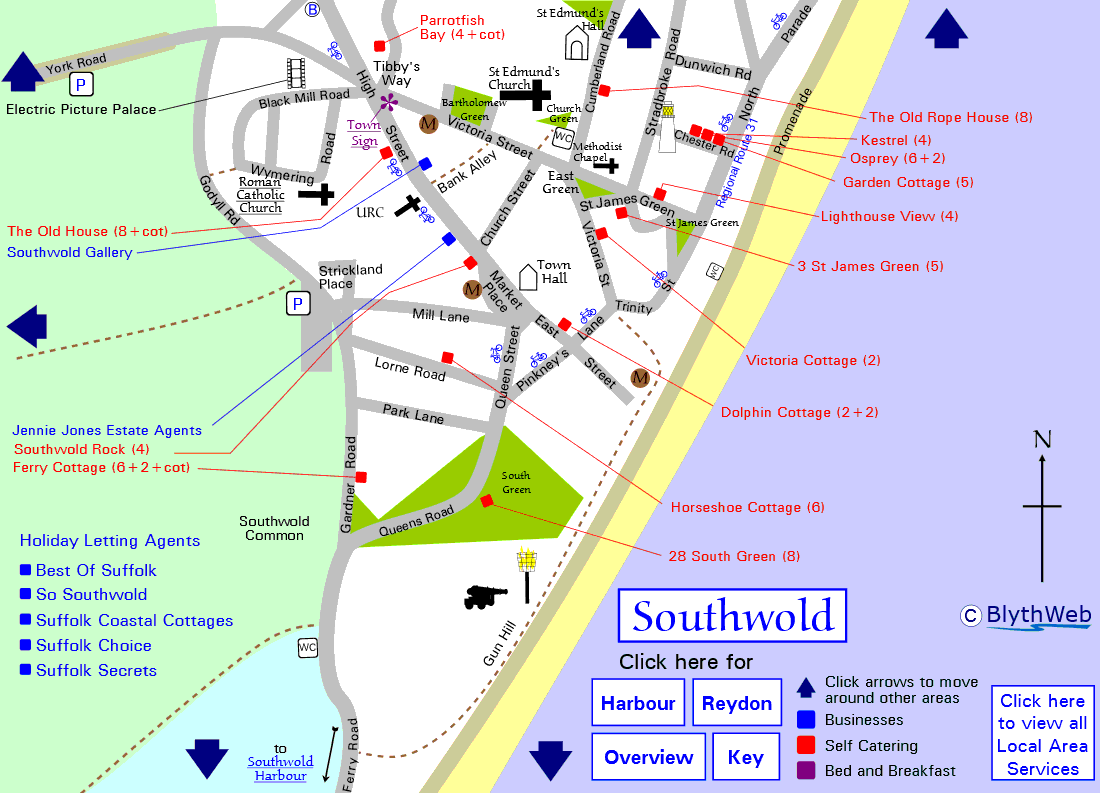 Southwold Town Map (North) Some at-a-glance information about Southwold. Zoom Out For the Overview Map. Explore Southwold is part of the Blythweb Group of Local Sites and is owned and operated by Blythweb which is a trading name of MHCreations. (Formerly Blythweb Ltd 1999 - 2017) . Blythweb Blythburgh Bramfield Halesworth Walberswick.