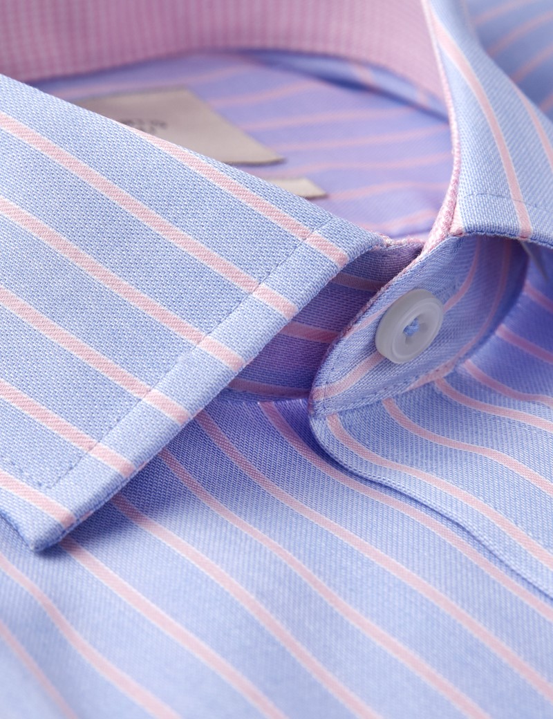 Men's Formal Pink & Light Blue Bold Stripe Slim Fit Shirt Single Cuff Easy Iron Hawes & Curtis