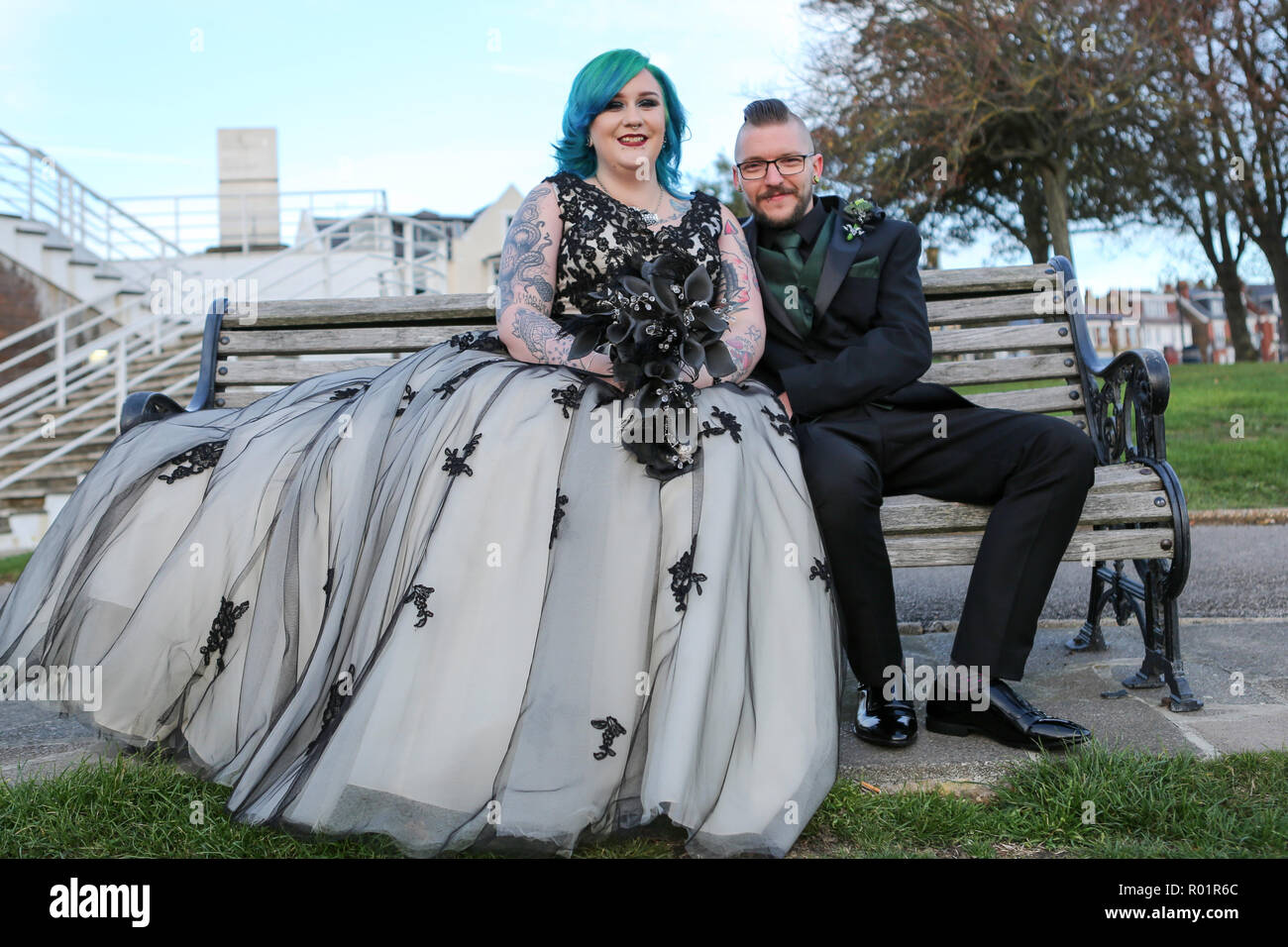 Southend on Sea, UK. 31st Oct, 2018. A newlywed gothic couple celebrate Halloween and their