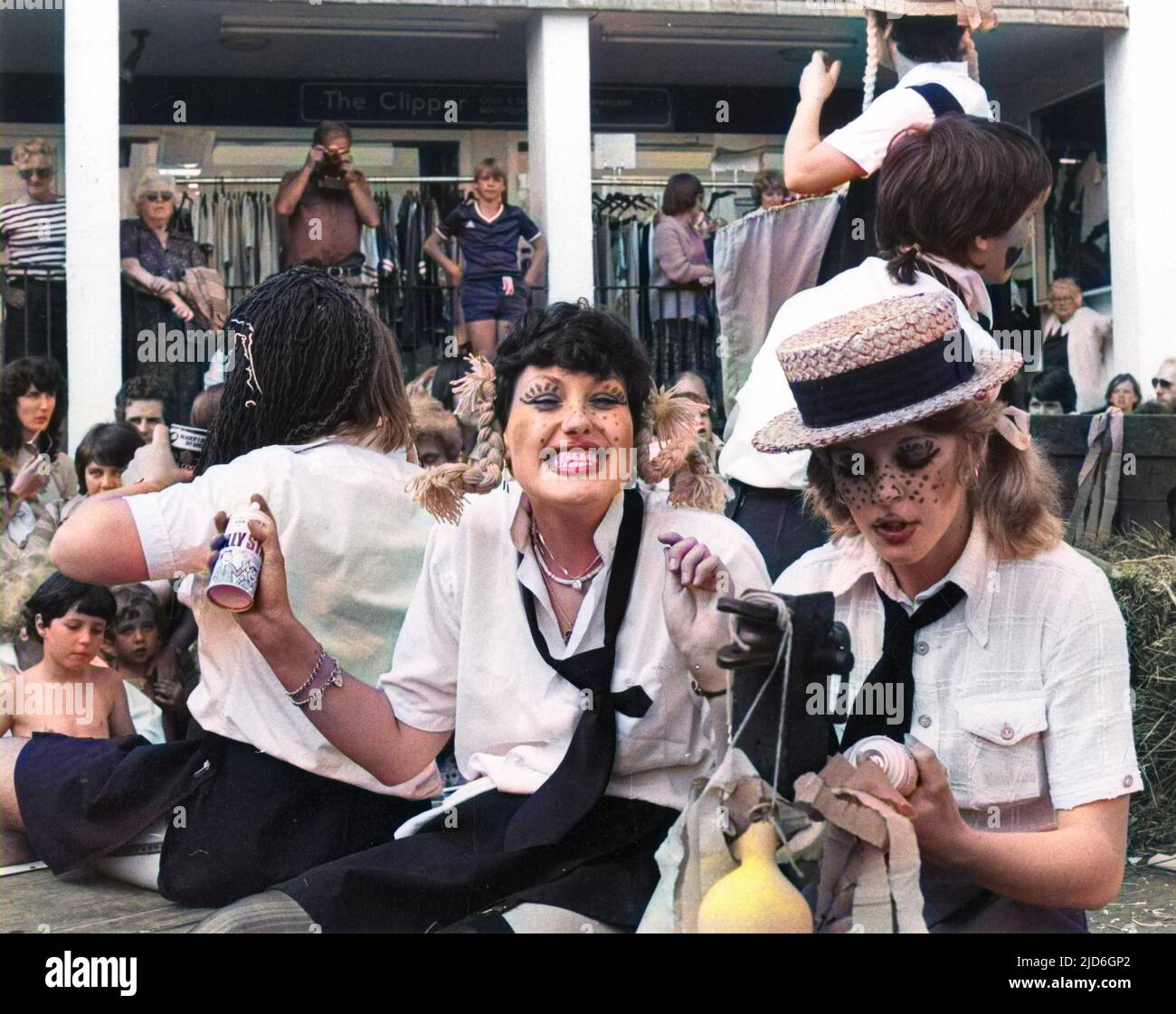 Girls dressed up as naughty 'St. Trinian's' style schoolgirls at the St. Ives Carnival, Cornwall